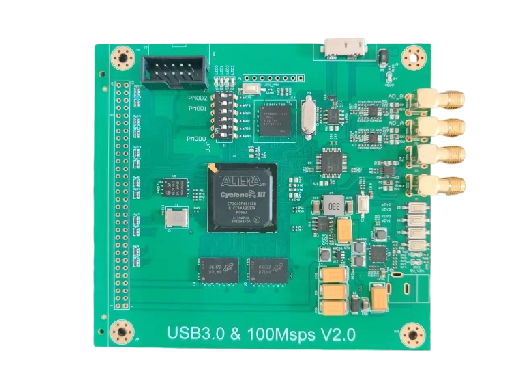 双通道;100MHz模拟带宽;100MSPS采样率;10位A/D分辨率:支持内/外触发切换;可输出两路电脉冲信号;通过USB3.0接口传输数据等。